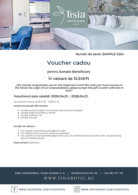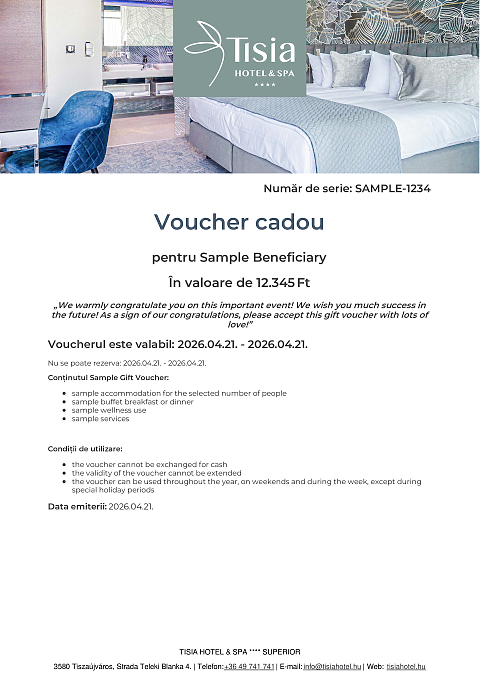 - Voucherul poate fi utilizat, în perioada de valabilitate, pentru orice serviciu hotelier, de restaurant sau de masaj.